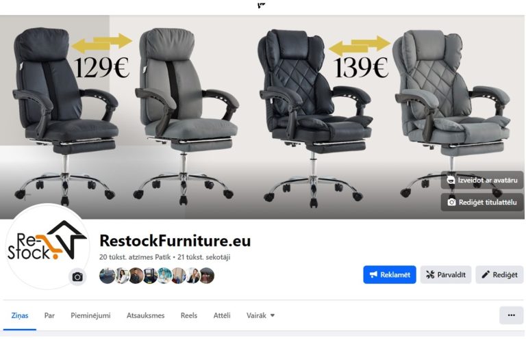 RestockFurniture veikals ir aktīvs sociālo tīklu lietotājs, regulāri informējam mūsu klientus par jauniem biroja krēsliem piedāvājumā, akcijām, jaunumiem un īpašajiem piedāvājumiem. Īpašie piedāvājumi tiek publicēti tikai mūsu Facebook un Instagram lapās.